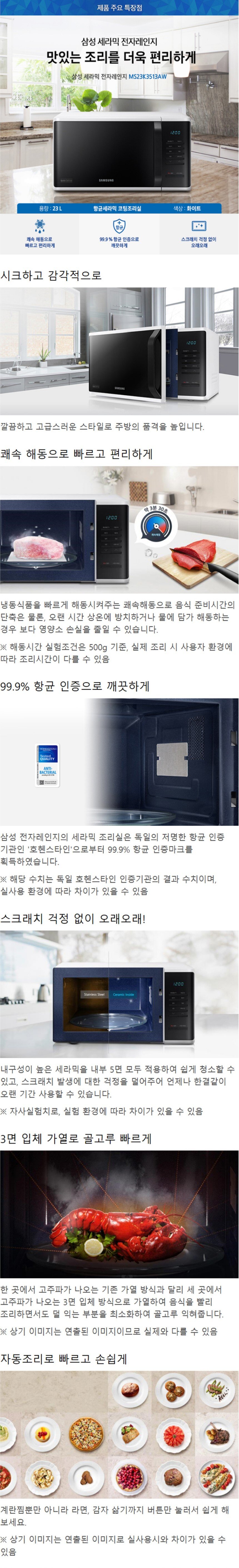 [삼성전자] 세라믹 전자레인지 MS23K3513AW [용량:23L]